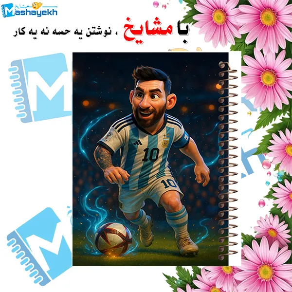 دفتر مشق ۶۰ برگ مشایخ طرح لیونل مسی، مخصوص طرفداران فوتبال و سبک زندگی ورزشی ⚽️