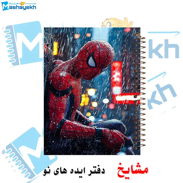 دفتر مشق ۱۰۰ برگ مرد عنکبوتی مشایخ؛ با جلد طلقی شفاف و جلد پشت چوبی مقاوم، همراهی دوستداشتنی برای نوشتن روزهای پرانرژی 🕷️✨