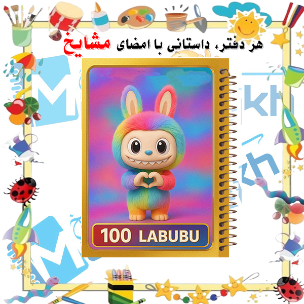 دفتر مشق ۶۰ برگ مشایخ طرح لبوبو (LABUBU) کد MN865 با طراحی خاص و فانتزی خودش، یکی از جذابترین دفترهای برند مشایخه 💖