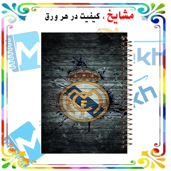 دفتر یادداشت 60 برگ مشایخ با طرح باشگاه رئال مادرید و طراحی فوتبالی، گزینهای عالی برای یادداشتبرداری روزانه، تمرین دروس و فعالیتهای مدرسه است. طراحی جذاب و ورزشی آن، مخصوص طرفداران فوتبال و علاقهمندان به رئال مادرید است.