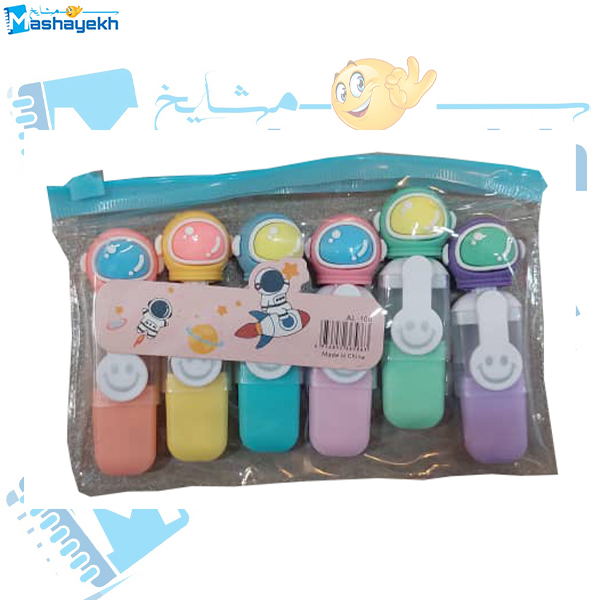 ماژیک هایلایت فانتزی طرح فضانورد بسته 6 عددی کد 3
